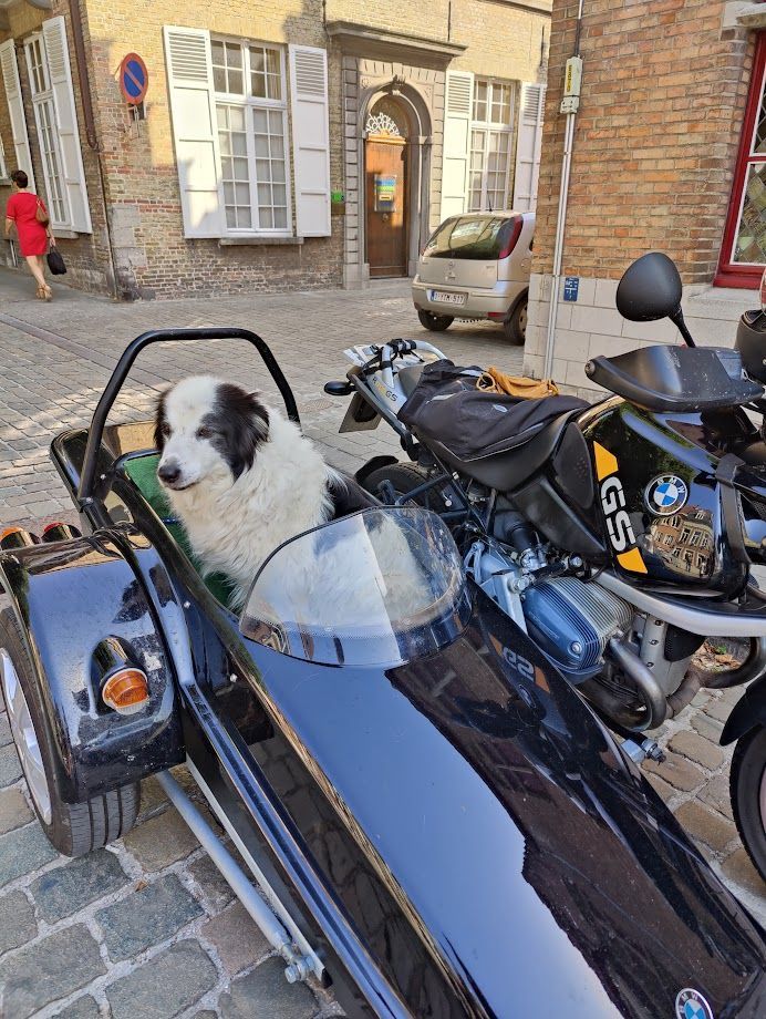 Motorradfahrer und Radfahrer